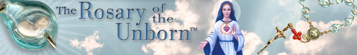 Pray The Rosary of the Unborn - www.rosaryoftheunborn.comThe Rosary of the Unborn, the Most Powerful and Ultimate Weapon to End Abortion! Believe. Pray. Save.* * * * * Message from October 7th - The Feast of the Holy Rosary:"Your Rosary of the Unborn is My weapon of choice during this present age. Your future lies in the welfare of these innocent unborn lives. Wage war with Satan with this - Heaven's most powerful weapon." "...do not allow yourselves to be tricked by Satan to think that your prayers and your vote do not count. Both your prayers and your vote in this upcoming election affect your future and the future of the world." "...your prayers are like weapons of mass destruction against Satan's lies."With The Rosary of the Unborn, HEAVEN WILL BLESS OUR EFFORTS in offering our prayers and sacrifices. Our efforts involve: 1) A sacrifice of time – your time in making the effort to obtain the Rosary, pray the Rosary, and make it known; 2) A monetary offering in the obtaining of the Rosary -- acting as a donation (without the reward of tax donation benefits and credits) toward the needy and pro-life counseling for poor and unwed mothers through the Life Mission Centers. 3) A surrender of your will and a commitment– an offering of love to open the path of righteousness and allow God ’s Will to be done; to understand and acknowledge that we cannot do things alone and without God. We cannot end abortion for all time without God’s help.THE POWER OF THE MOST HOLY ROSARYBlessed Mother says: "Praise be to Jesus. Dear children, when you pray the rosary, you hold the power in your hands to defeat Satan's agenda in the world. With the prayer of the rosary, you can assist Me in lifting the veil of deceit Satan has placed over the heart of the world. With the rosary, you allow Me to extend many graces into the world which God would have withheld because of mankind's infidelity to the Truth." "Dear children, you do not understand the power of a rosary said from the heart, but I tell you, that no leader, no government, no peace accord or economic remedy can compare to the mighty force of this prayer. The enemy hides this from you. My words to you today challenge the darkness of his secrecy with the Light of Truth. Do not be misled to believe your efforts are ineffective. I tell you, your rosaries are the Victory." (8/31/2012)JESUS, REGARDING THE ROSARY OF THE UNBORN: "...if you knew the power of the rosary that you hold in your hands and that you pray with your hearts, you would never put it down. It would always be with you and the prayers would always be on your lips. (10/7/04)"The Greatest Weapon of Mass Destruction Is ABORTION."Message from Jesus: "If your nation overturns legalized abortion, I will richly bless it by my favor. But if this sin continues with national approval, much will be stripped away."